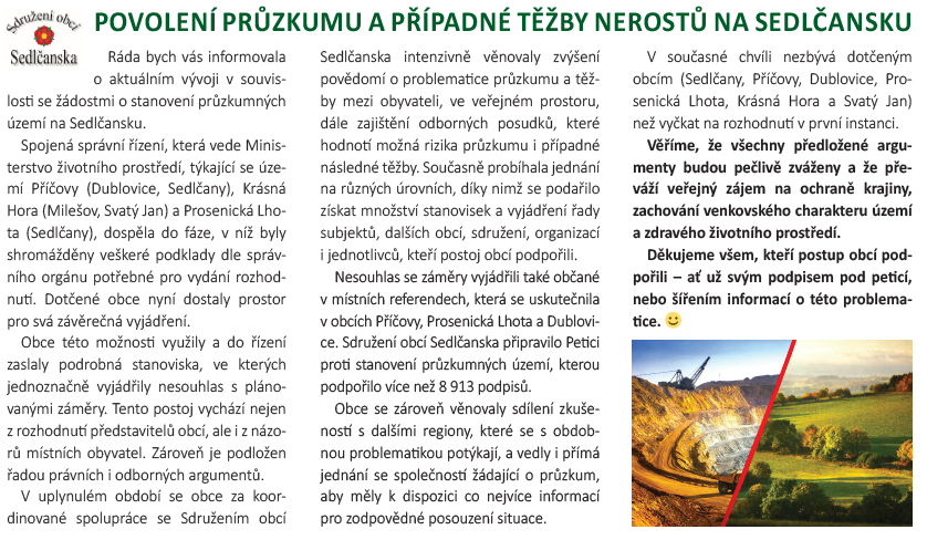 zveřejňujeme informace k aktuálnímu vývoji v souvislosti se záměrem stanovení průzkumných území na Sedlčansku.